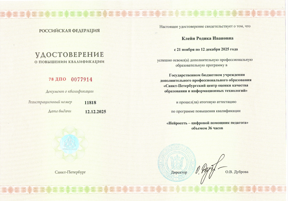 Первое образование: ГОУСПО педагогический колледж № 8 Санкт-